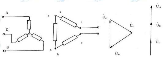 三臺(tái)單相變壓器的一次繞組接成星形,二次繞組接成開口三角形,因?yàn)榧釉谝淮卫@組上的電壓較高,鐵芯飽和,三臺(tái)單相變壓器磁通中都有基頻分量和三倍頻分量,三臺(tái)單相變壓器二次開口三角形連接使基頻分量相抵消,從而實(shí)行開口三角的倍頻電壓輸出,并通過繞組外接單相調(diào)壓器,即可實(shí)現(xiàn)三倍頻電壓的調(diào)節(jié)。