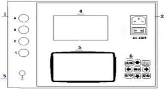 2.AC220V:整機(jī)電源輸入口,帶有交流插座,保險倉和開關(guān)。