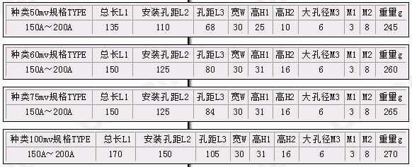 FL-2型150A~200A錳銅分流器技術(shù)指標
