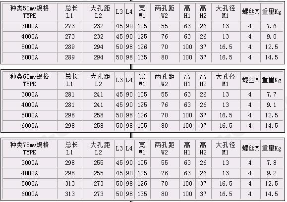FL-2型3000A~6000A錳銅分流器技術(shù)指標(biāo)