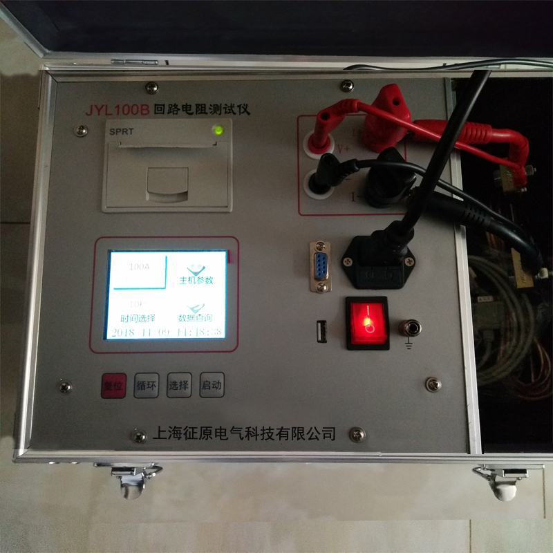 JYL100B回路電阻測(cè)試儀(帶電腦接口)是上海征原公司根據(jù)IEC標(biāo)準(zhǔn)及中華人民共和國(guó)最新電力執(zhí)行標(biāo)準(zhǔn)DL/T845.4- 2004有關(guān)規(guī)定,發(fā)揮自身技術(shù)優(yōu)勢(shì),精心研制的精度好、數(shù)字化開(kāi)關(guān)檢測(cè)儀器。該儀器采用高頻大功率恒流開(kāi)關(guān)電源技術(shù),可測(cè)得微歐姆級(jí)接觸電阻。適用于各種開(kāi)關(guān)及電器的接觸電阻、回路電阻及電纜電線、焊縫接觸電阻的測(cè)量,儀器測(cè)量數(shù)據(jù)準(zhǔn)確,性能穩(wěn)定,滿足電力、供電部門現(xiàn)場(chǎng)高壓開(kāi)關(guān)維修和高壓開(kāi)關(guān)廠回路電阻測(cè)試的要求。輸出電流和測(cè)量電阻同時(shí)輸出在65K真彩色液晶上,測(cè)量結(jié)果即可電壓輸出也可U盤存儲(chǔ),掉電存儲(chǔ)可滿足隨時(shí)數(shù)據(jù)查詢。