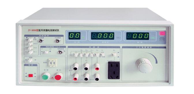 醫(yī)用泄漏電流測試儀用于測量醫(yī)用電器設備的連續(xù)漏電流和患者輔助電流的檢測試驗設備。ZY-3005系列醫(yī)用泄漏電流測試儀是按照GB9706.1-2007(IEC60601-1:1988)《醫(yī)用電氣設備  第一部分:安全通用要求》設計、生產(chǎn)。其測試回路(MD)輸入阻抗模擬人體阻抗,符合GB9706.1-2007(IEC60601-1:1988)的要求,測試電流達5uA,并為用戶提供一個輸出電壓0~250V連續(xù)可調(diào),和最高網(wǎng)電壓的110%的電壓源,輸出的基本容量配置為300VA的隔離電源,可以滿足Ⅰ、Ⅱ各類型設備進行正常狀態(tài)下和單一故障下的對地漏電流、外殼漏電流、患者漏電流、患者輔助電流的測試。